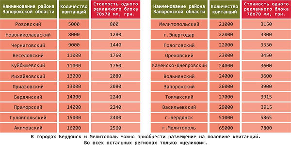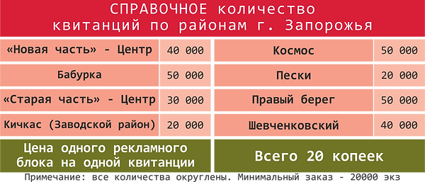 Размещать рекламу на квитанциях можно как по всему городу сразу, так и отдельно по районам.